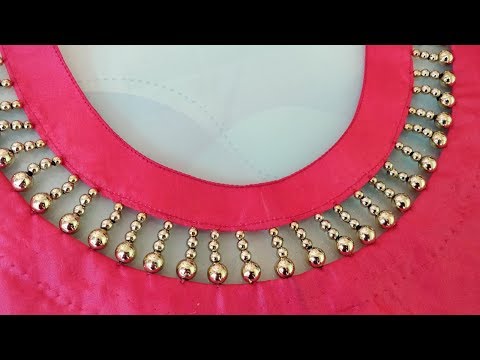 Very Creative Beaded Design Latest Boat Neck Design For Kurti