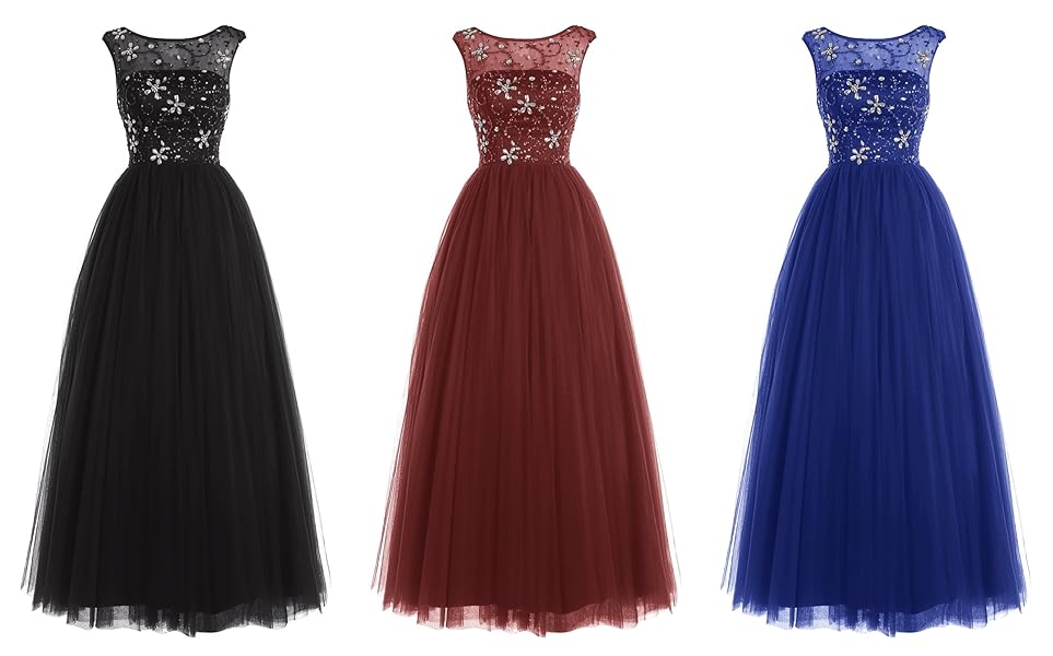 Bbonlinedress Long Tulle Elegant Beaded Flower Boatneck Prom Gown